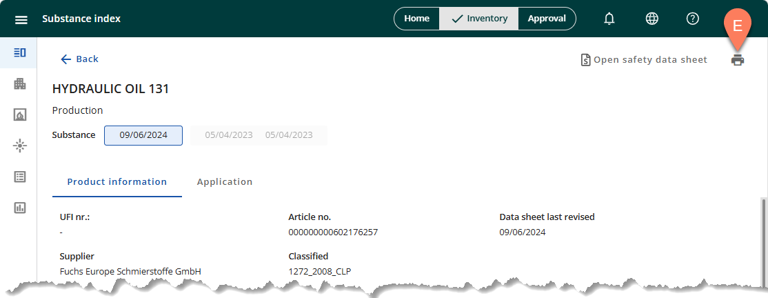 - Header – Chemical name and identification numbers such as UFI no., Cas no., Article no., and EC no.
